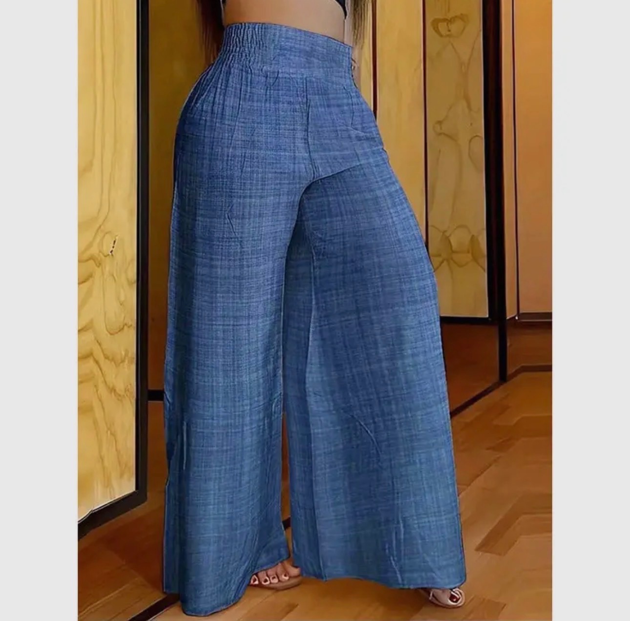 Soft chambray fabric meets a breezy wide-leg silhouette for ultimate comfort and style. High-waisted, flowy, and perfect for casual or elevated looks.